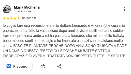 “Grazie alla dottoressa ho superato i miei problemi al piede.”