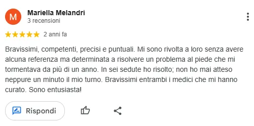 “Problemi ai piedi risolti e dolori eliminati: esperienza eccellente!”