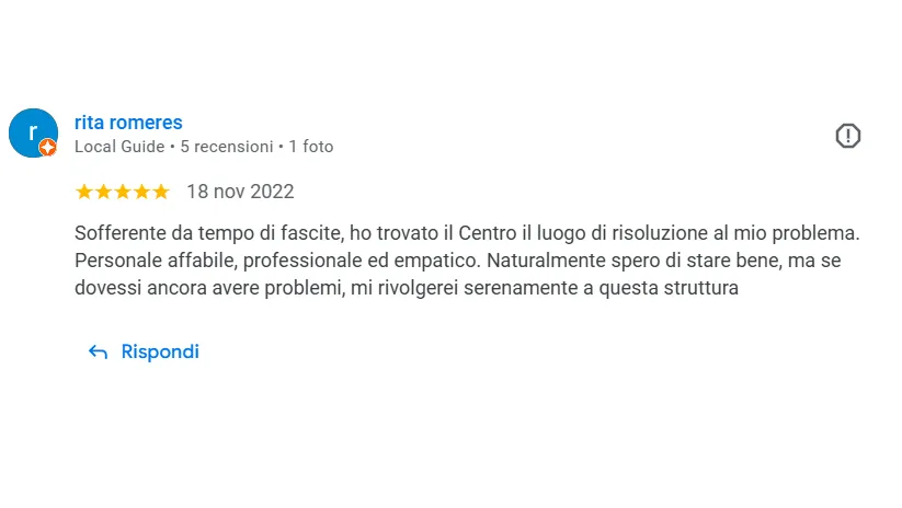 Esperienza ottima: ho risolto il problema iniziale e eliminato i forti dolori e le problematiche varie.