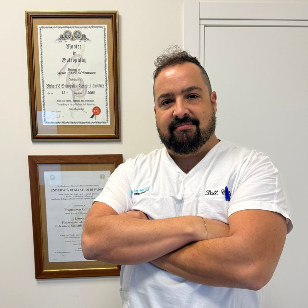 Il Dott. Francesco Conton è fisioterapista, osteopata e posturologo. Con oltre 20 anni di esperienza, è specializzato in disturbi posturali, tallonite, fascite plantare, neuroma di Morton, alluce valgo, metatarsalgia e altri problemi del piede